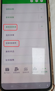 - 攜帶身份證、保單、儲金簿至郵局申請「行動郵局/ATM保單借款功能」。